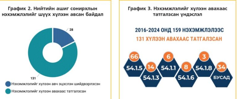 -Шүүхийн статистик мэдээлэл гаргах шалгуурыг нарийвчлан нийтийн ашиг сонирхолд холбогдох нэхэмжлэл, хэрэг хянан шийдвэрлэх ажиллагааны явц, үр дүнг бүрэн харуулахуйц статистик мэдээлэл гаргадаг болох.
