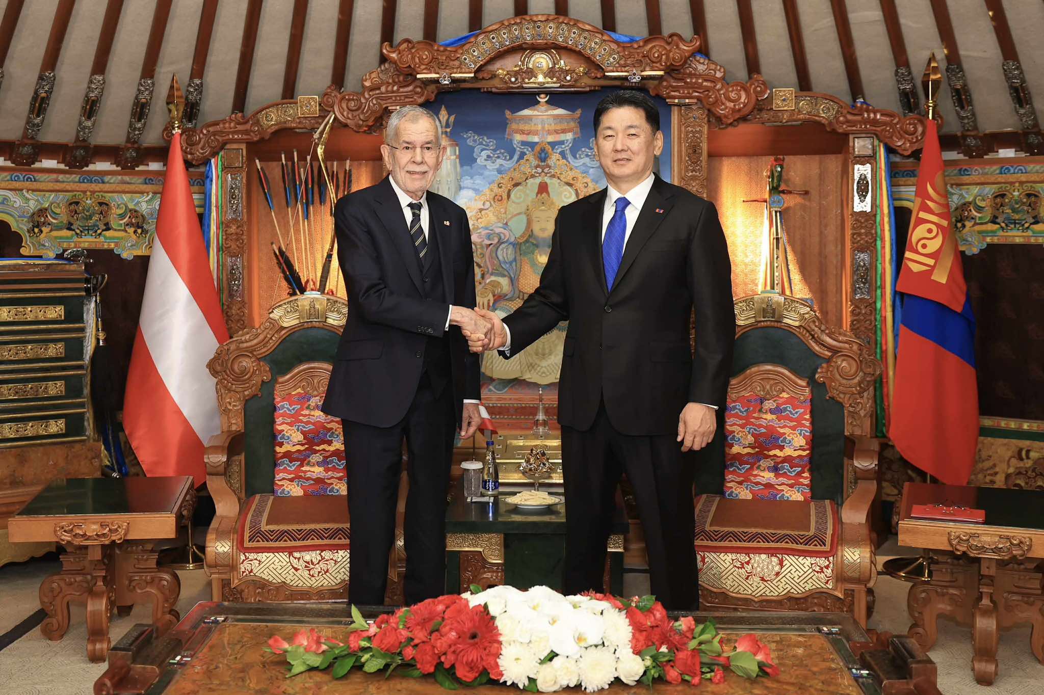 Монгол Улсын Ерөнхийлөгч Ухнаагийн Хүрэлсүх, Бүгд Найрамдах Австри Улсын Ерөнхийлөгч Александр Ван дер Беллен нар Төрийн ордонд албан ёсны хэлэлцээ хийлээ.