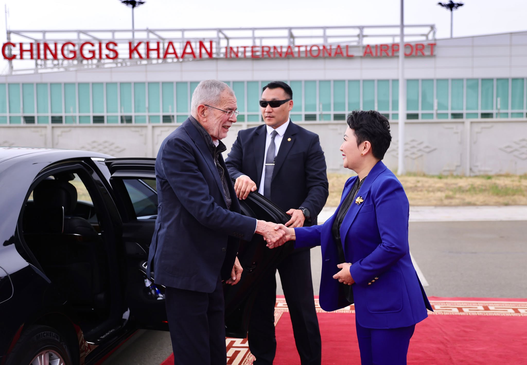 Бүгд Найрамдах Австри Улсын Ерөнхийлөгч Александр Ван дер Белленийг “Чингис хаан” олон улсын нисэх онгоцны буудалд Гадаад харилцааны сайд Б.Батцэцэг, Бүгд Найрамдах Австри Улсаас Монгол Улсад хавсран суугаа Онц бөгөөд Бүрэн эрхт Элчин сайд Андреас Рийкен болон албаны бусад төлөөлөгч үдлээ.