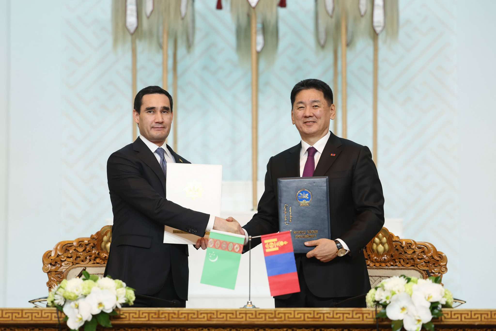 Айлчлалын хүрээнд Монгол Улсын Ерөнхийлөгч У.Хүрэлсүх, Туркменистан Улсын Ерөнхийлөгч Сердар Бердымухамедов нар “Монгол, Туркменистаны хамтын ажиллагааг хөгжүүлэх тухай хамтарсан мэдэгдэл”-д гарын үсэг зурлаа.