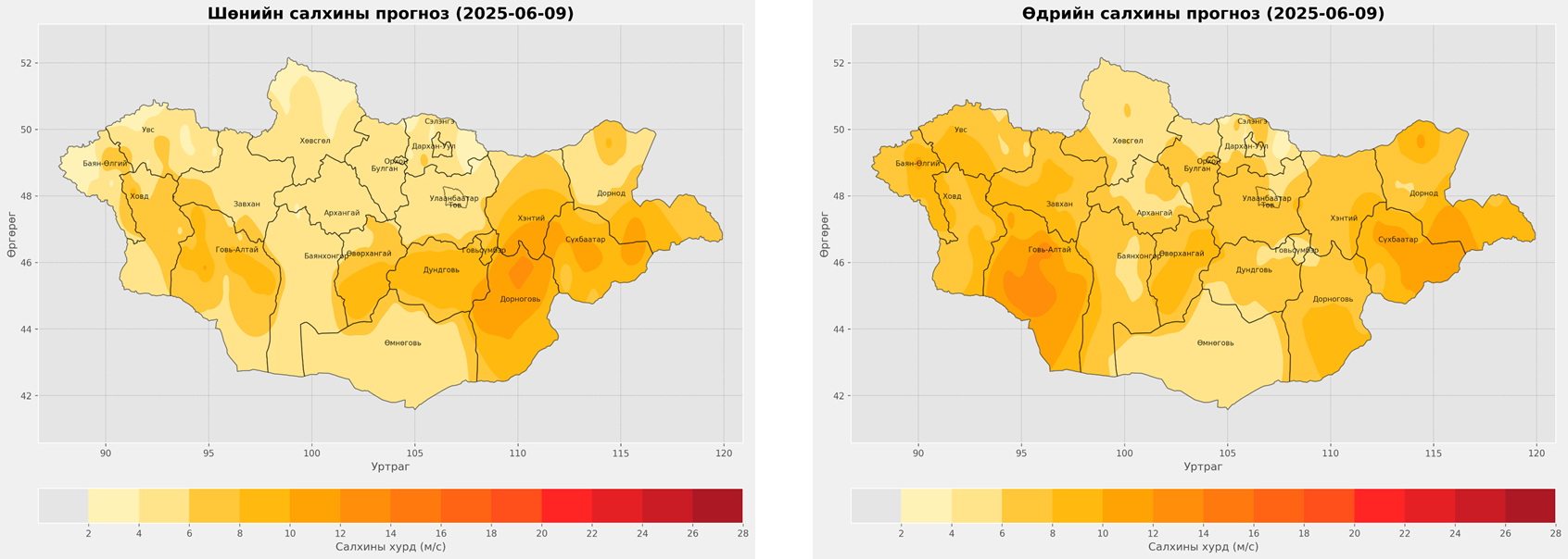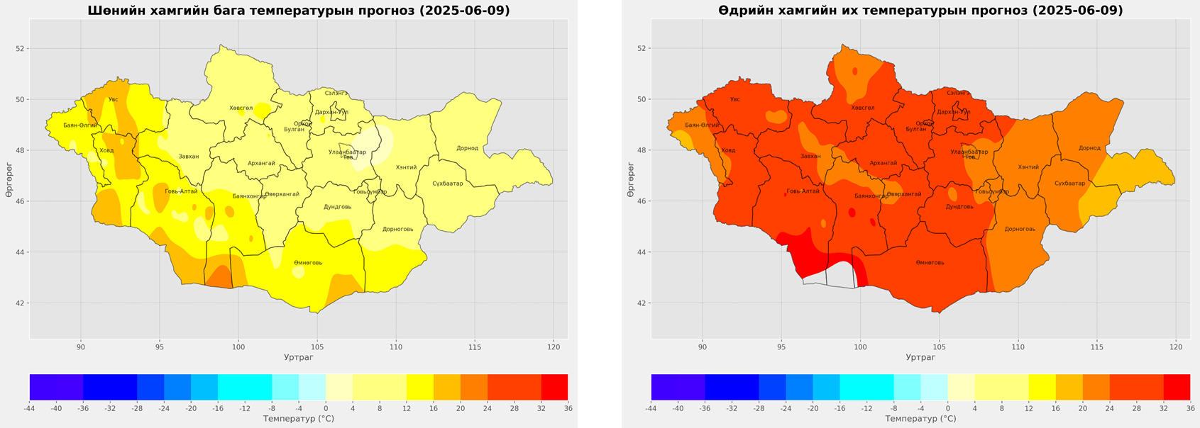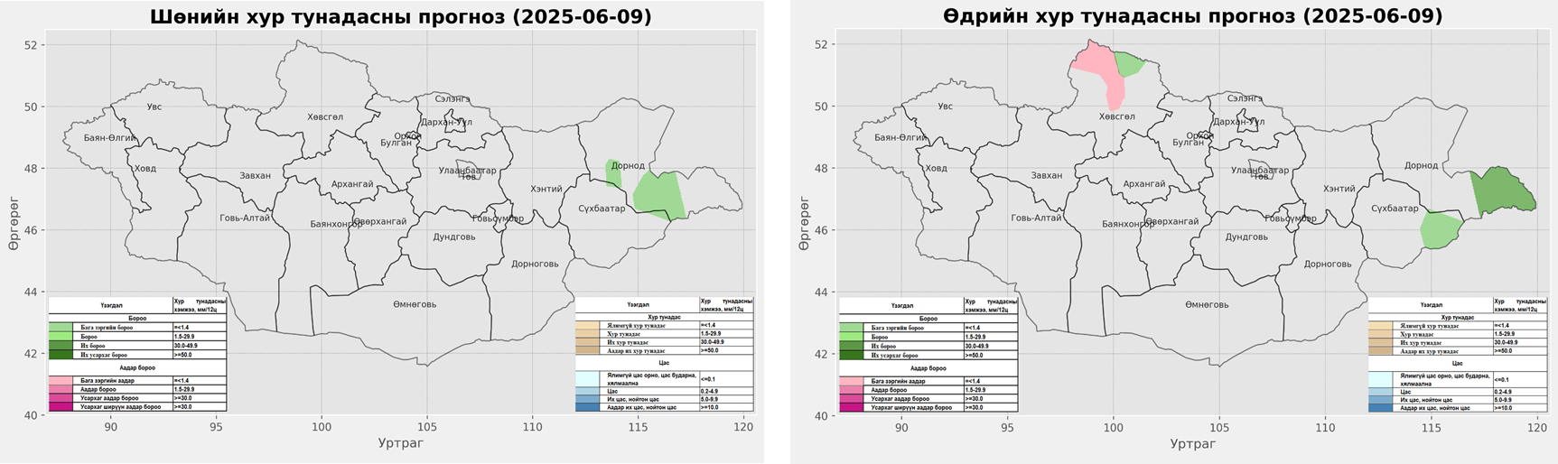 2025 оны 06-р сарын 08-ны 20 цагаас 2025 оны 06-р сарын 09-ний 20 цаг хүртэлх цаг агаарын урьдчилсан мэдээ: