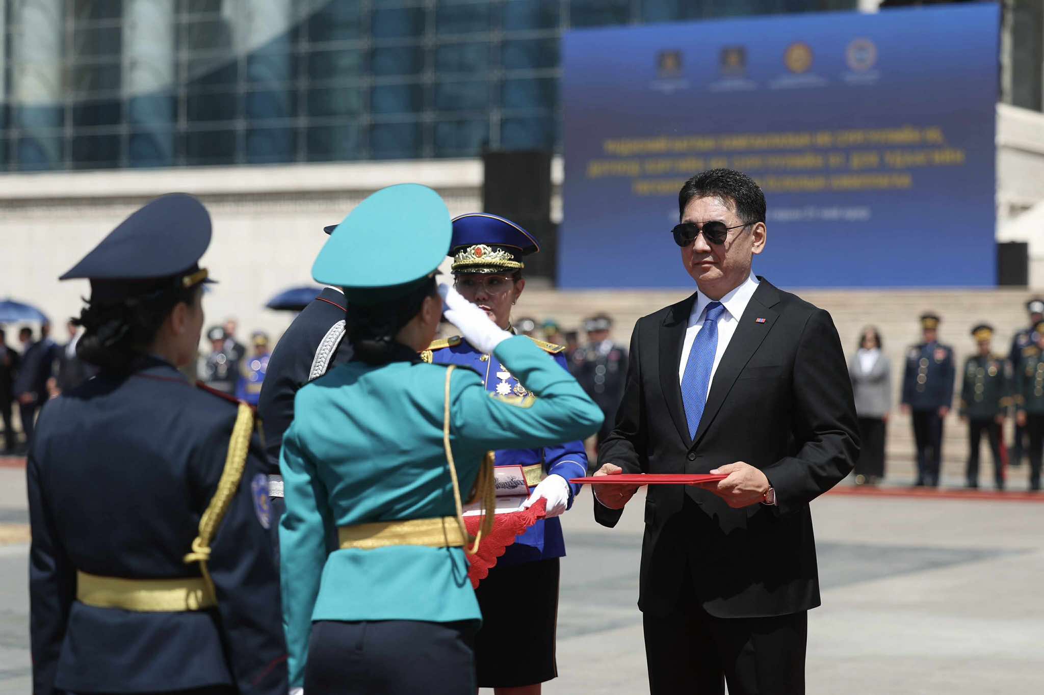 Монгол Улсын Ерөнхийлөгч, Зэвсэгт хүчний Ерөнхий командлагч У.Хүрэлсүх ёслолд оролцож, үндэсний аюулгүй байдлыг хангах нэр хүндтэй бөгөөд хариуцлагатай албанд хүчин зүтгэхээр цэргийн цолоо гардан авсан төгсөгчдөд баяр хүргэж, амжилт хүслээ.
