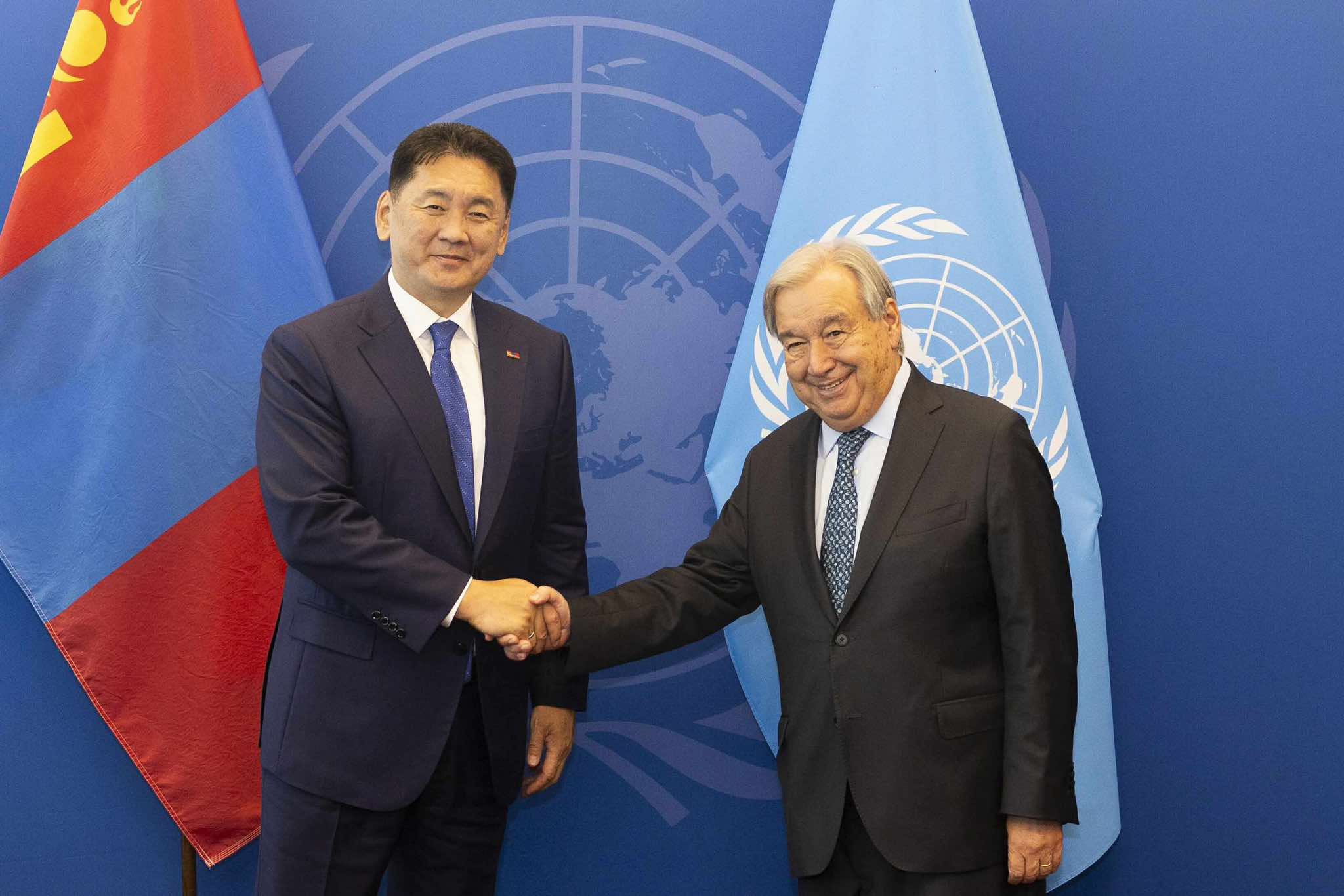 Монгол Улсын Ерөнхийлөгч У.Хүрэлсүх 2025 оны 09 дүгээр сарын 23-ны өдөр НҮБ-ын Ерөнхий нарийн бичгийн дарга Антонио Гутеррештэй НҮБ-ын Төв байранд уулзав.