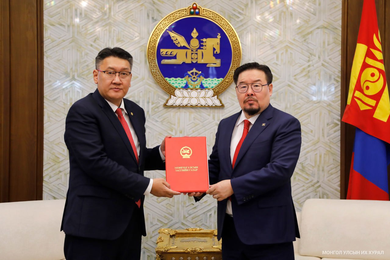 Сангийн сайд Б.Жавхлан өнөөдөр (2023.09.29) Монгол Улсын 2024 оны төсвийн тухай хуулийн төслийг Монгол Улсын Их Хурлын дарга Г.Занданшатарт өргөн мэдүүллээ.