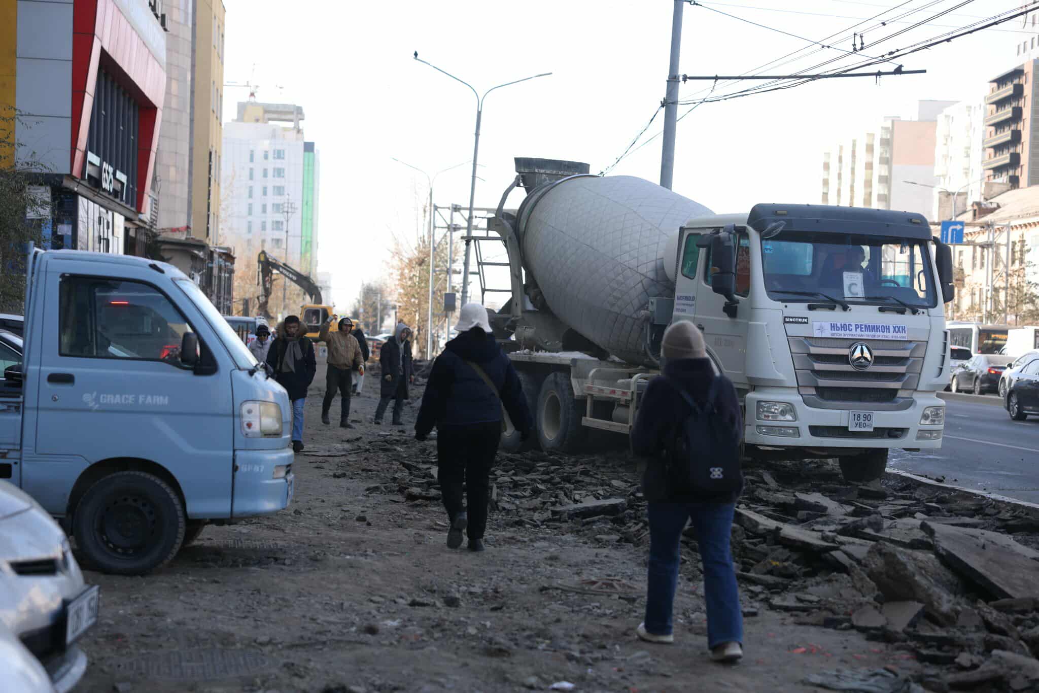 Нийслэлийн Хөрөнгө оруулалтын газрын Барилга захиалагчийн хяналтын хэлтсийн дарга Б.Ганзориг “11 Г, Д 800 мм-ийн голчтой дулааны шугамыг 1000 мм-ийн голчтой болгон 40 жилийн дараа өргөтгөлөө. Шугам солих ажлыг халаалт зогссон үед дуусгаж, дараа нь хөрсийг нягтаршуулж, хөрсний хэмжилт хийсэн. Өнөөдрөөс эхлэн явган хүний замын нөхөн сэргээлтийн ажлыг эрчимтэйгээр эхлүүлж байна.