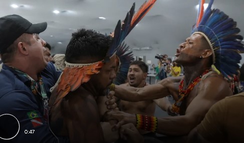 COP30 уур амьсгалын өөрчлөлтийн дээд хэмжээний уулзалтын байранд олон арван уугуул иргэд хүчээр орж хамгаалалтын ажилтнуудтай мөргөлджээ. Тэд уур амьсгалын өөрчлөлтийн эсрэг дорвитой арга хэмжээ авах, ой модыг хамгаалахыг шаардсан байна. Ууртайгаар хашгирч буй жагсагчид дэлхийн өнцөг булан бүрээс ирсэн мянга мянган төлөөлөгчид цугларсан танхимд орохыг хүссэн.