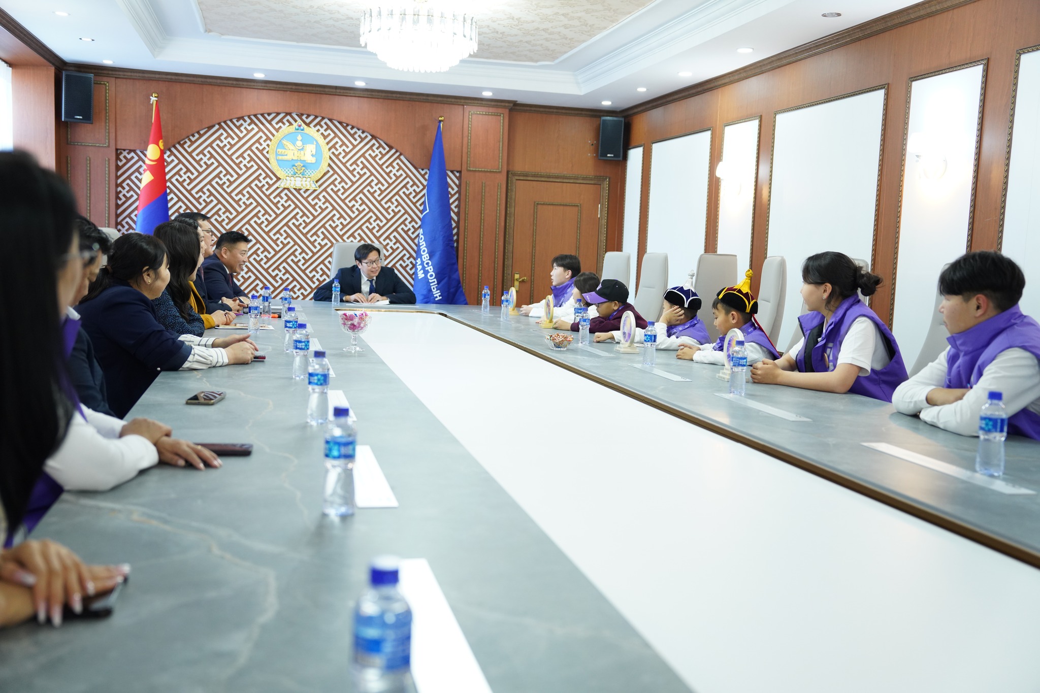 Олон улсын тэмцээнд амжилттай оролцсон эдгээр хүүхдүүдийг багш нарынх нь хамт Боловсролын сайд П.Наранбаяр, Боловсролын яамны Төрийн нарийн бичгийн дарга Х.Батжаргал нар хүлээн авч уулзан, сурч хөгжихөд нь амжилт хүслээ.