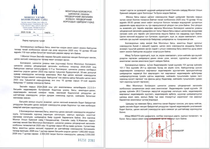 Багш нарын цалинг нэмэх гурван зүйлт шаардлагад Боловсролын яамны зүгээс хариу өглөө.