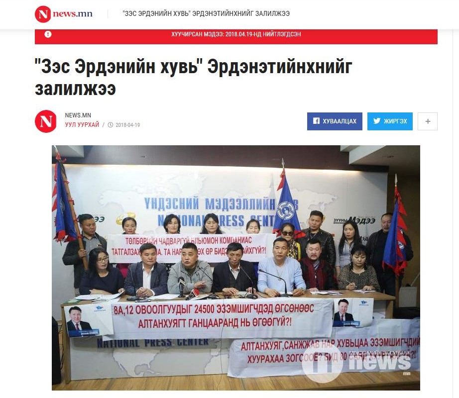Энэ удаад бид Эрдэнэтийн 24500 иргэнийг хохироосон, эдгээр иргэдийн хувь эзэмшдэг байсан “Зэс эрдэнийн хувь” ХХК-ийг хууль шүүхийн байгууллагыг оролцуулан луйврын шинжтэйгээр хувьцааг нь авсан байж болзошгүй МАШ НОЦТОЙ мэдээллийг хүргэхээр бэлтгэлээ.