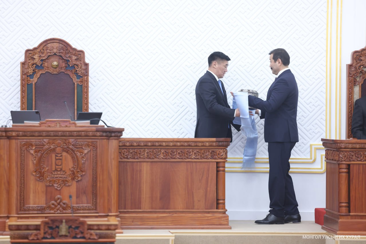 УИХ-ын дарга С.Бямбацогт УИХ-ын тамгыг гардан авч, суудлаа эзэлснээр үүрэгт ажилдаа орлоо. Тэрбээр УИХ-ын даргын үүрэгт ажлын хүлээн авсантайгаа холбогдуулан үг хэлж, талархал илэрхийлэв.