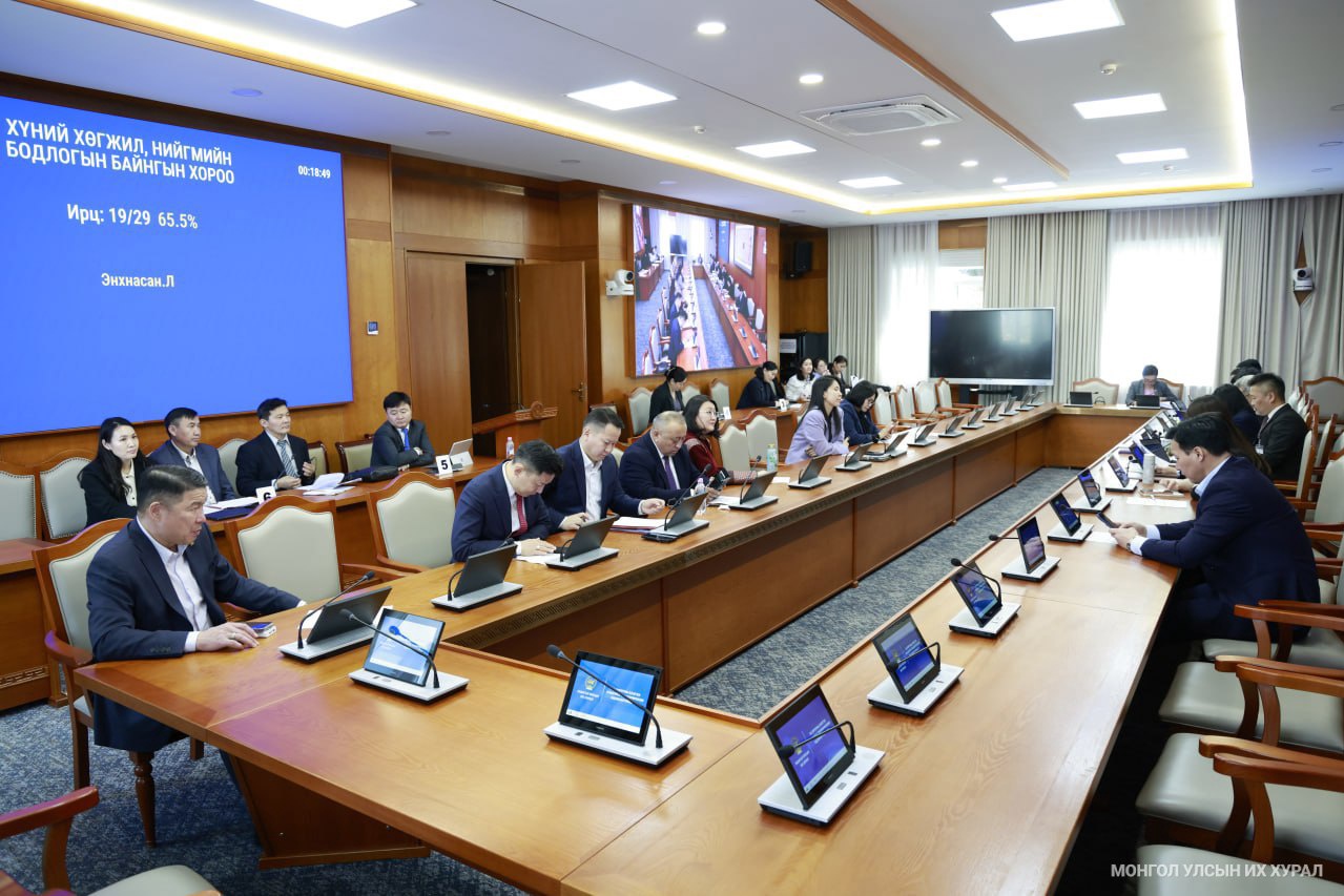Хүний хөгжил, нийгмийн бодлогын байнгын хорооны өнөөдөр (2026.04.15)-ийн хуралдаан 14.30 цагт УИХ-ын гишүүн Н.Алтаншагай, Ж.Баясгалан С.Зулпхар, Д.Рэгдэл, А.Ариунзаяа, Б.Бейсэн, Т.Мөнхсайхан, М.Сарнай, Д.Энхтуяа, О.Батнайрамдал, Ж.Галбадрах, Ц.Мөнхтуяа, Г.Хосбаяр, Д.Батлут, М.Нарантуяа-Нара нарын буюу нийт гишүүдийн 55.2 хувийн ирцтэйгээр эхэллээ. Хуралдааныг Л.Энхнасан даргалан явуулж, гишүүн Б.Уянга, Д.Рэгдэл, Г.Хосбаяр нарын энэ оны долдугаар сарын 02-ны өдөр өргөн мэдүүлсэн Шинжлэх ухаан, технологийн тухай хуульд нэмэлт, өөрчлөлт оруулах тухай болон хамт өргөн мэдүүлсэн хуулийн төслүүдийн анхны хэлэлцүүлгийг хийв.