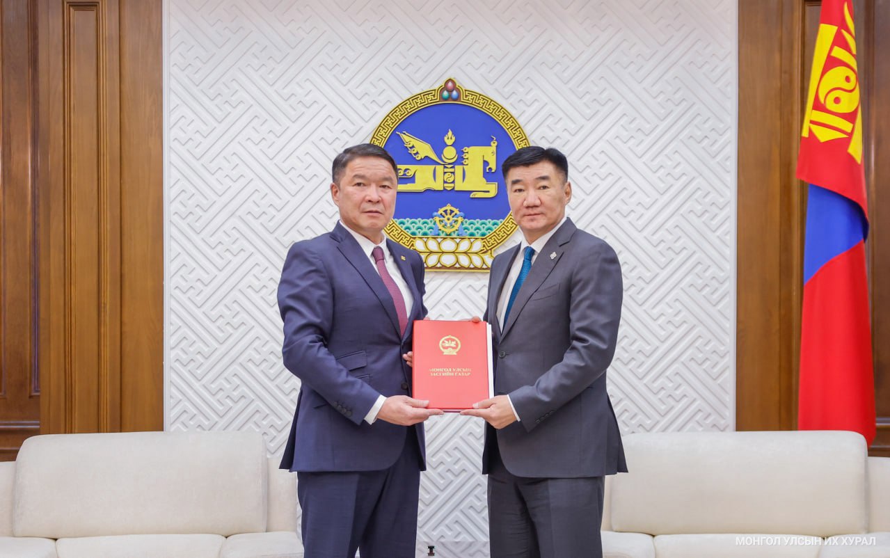 УИХ-ын дарга С.Бямбацогтод өнөөдөр (2026.04.20) УИХ-ын гишүүн, Батлан хамгаалахын сайд Д.Батлут Улсын нисэхийн тухай хуулийн шинэчилсэн найруулгын төслийг өргөн мэдүүлэв.
